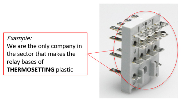 استفاده از مواد اولیه با بالاترین سطح کیفیت برای رسیدن به بهترین بازدهی. به عنوان مثال استفاده از پلاستیک نوع THERMOSETTING در بدنه ی رله ها که کیفیت فیزیکی بالا و ایزولاسیون بسیار قوی بین کنتاکت ها را فراهم می کند.